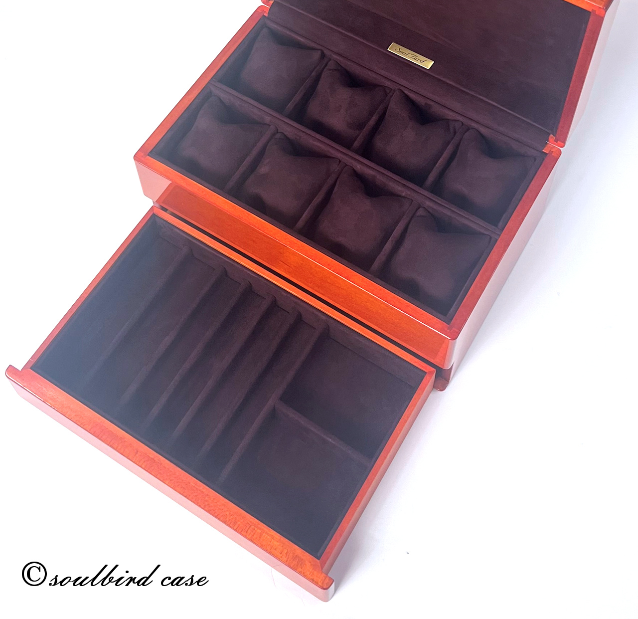 時計ケース内に「soulbird」の真鍮のプレートを貼付けして納品いたします。