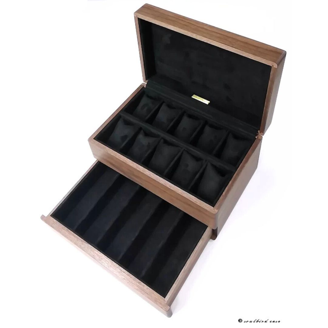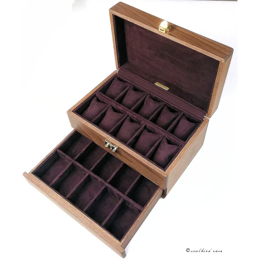 引き出し付き ブラックウォールナット材 オイル仕上げ 時計ケース