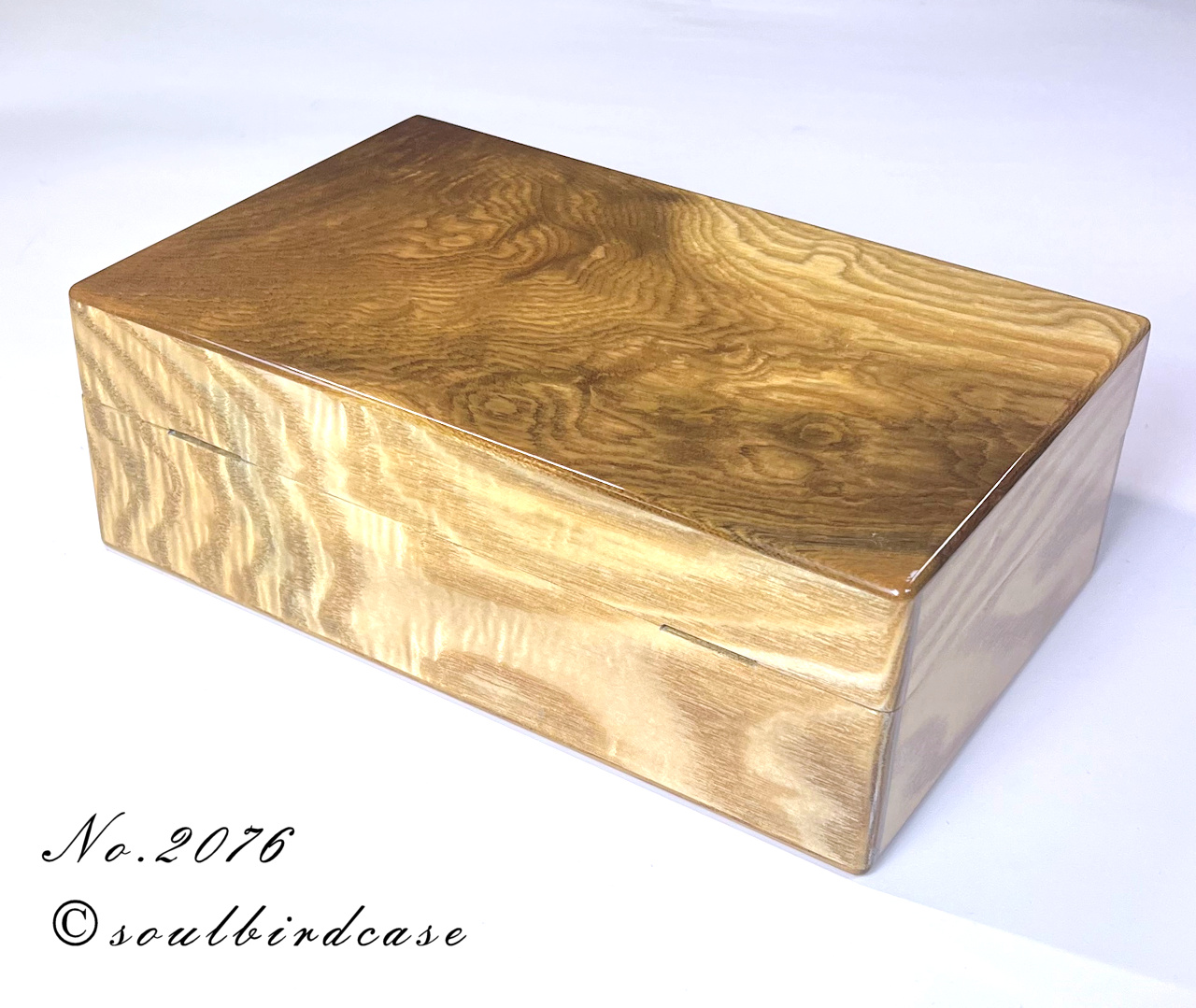 このキハダ材の中より大変珍しい「杢」が現れた部位のみを素材に組み上げを行いました。