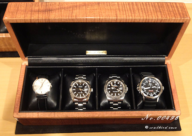 5本用のケースを4本仕様にしていただいたので、40.5mmから47mmの大型時計まで無理なく収納できます。