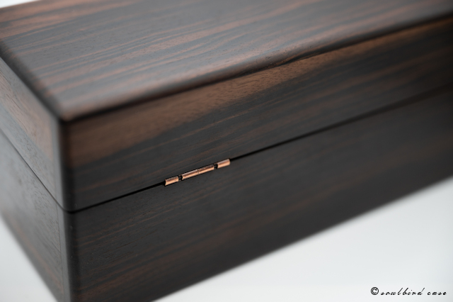 黒柿のケースありがとうございました。初めて工房を訪ねた時、奥野さんから色々な説明をして頂き、選んだ天板、孔雀杢と説明を受けて製作を依頼しました。