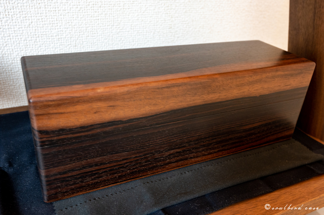 ですのでケースを縦に飾り楽しんでいます。(時計は出しづらいですが)黒柿が神秘の材とされるのがほんの少しだけ分かったような気がします。