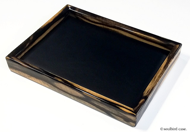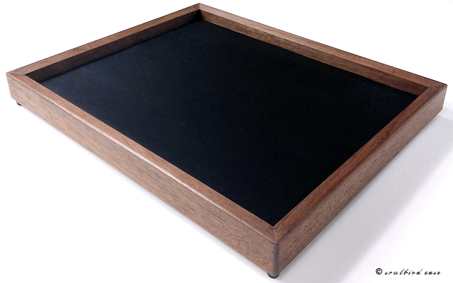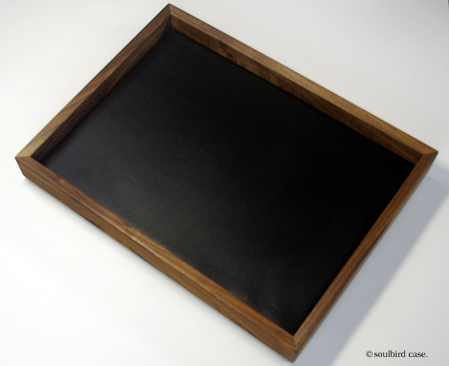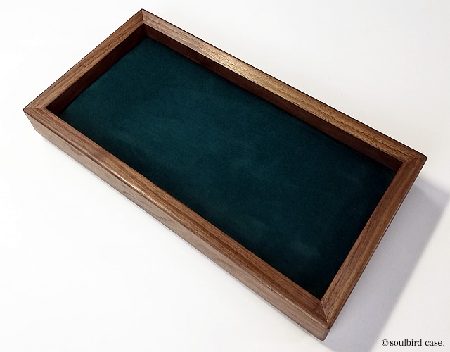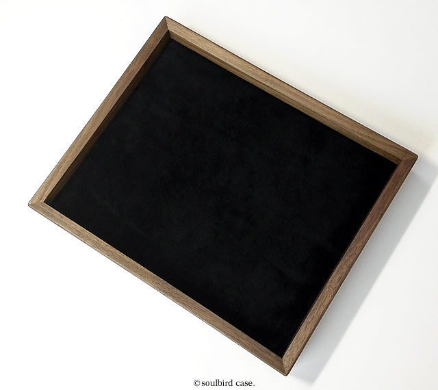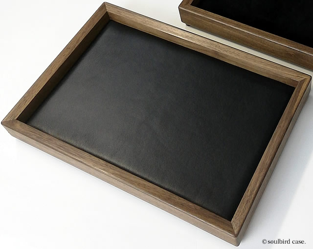 ウォールナットオイル仕上げ 時計用トレー 地中海放牧ラムレザー黒
